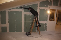 es dann ans Eingemachte. Zwischenwände werden aufgestellt, Glasfenster werden eingebaut, Wände werden verkleidet